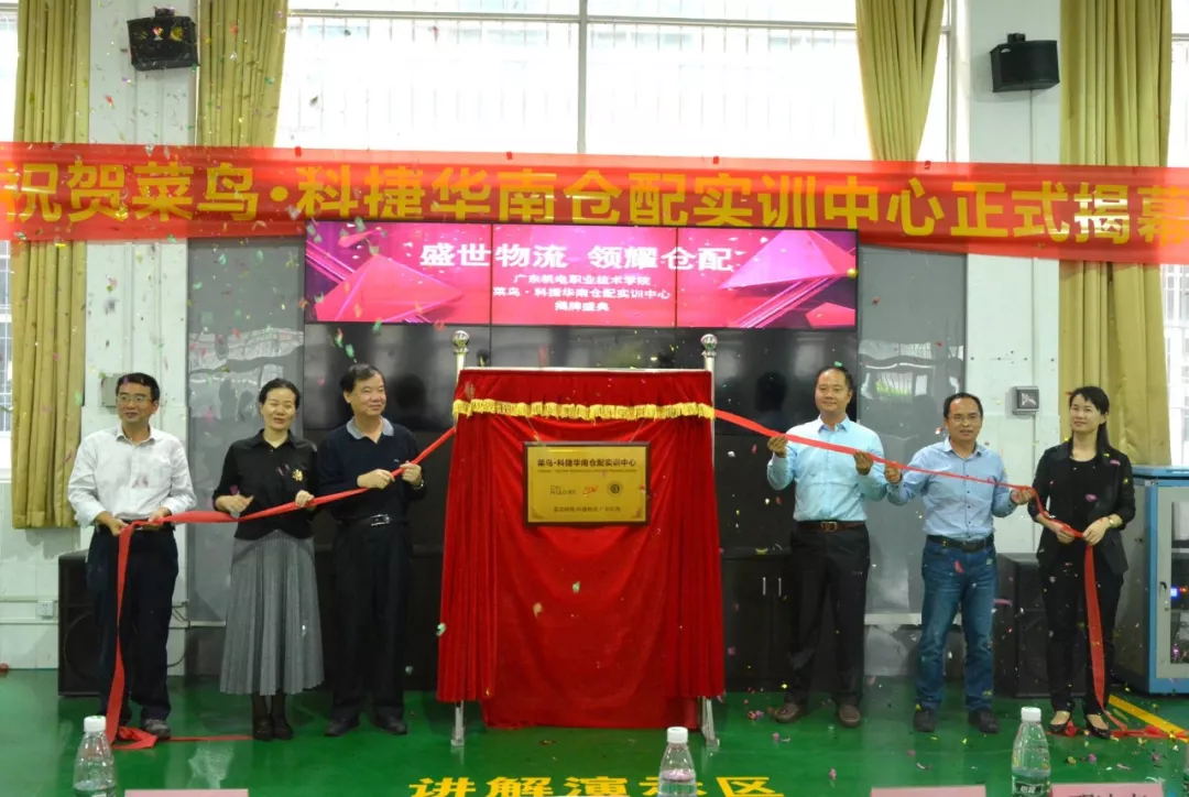科捷物流南區總經理胡紅與校方代表及菜鳥網絡代表共同為“菜鳥·科捷華南倉配實訓中心”揭牌。