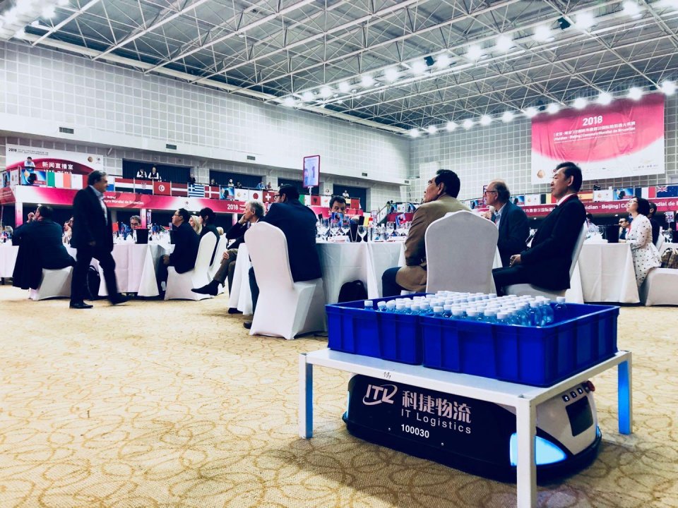 就是在這樣的世界級盛會上,科捷將其在武清機器人倉應用的“人機共舞”方案成功的應用到了其他場景中。大賽期間,正如在倉儲里機器人代替人工跑腿,科捷的機器人將扮演“侍酒小助手”的角色,為現場各位評委及嘉賓提供服務。