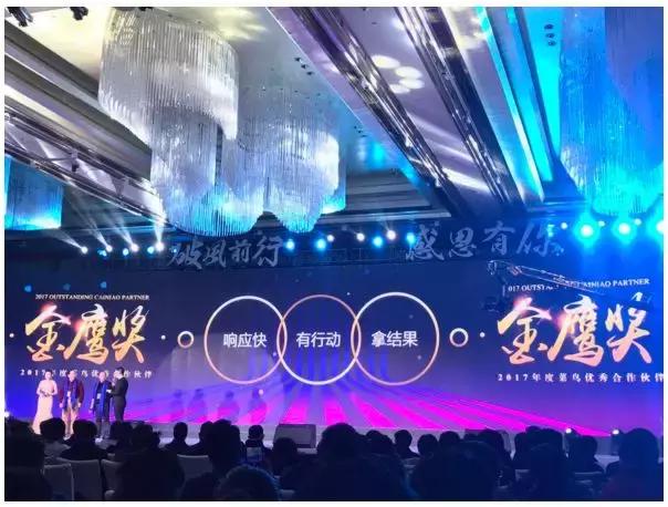 此次答謝會菜鳥為在2017年雙11大促中表現優異的合作伙伴頒獎。2017年雙11天貓全網成交1682億元,比去年增長了475億。在全球網購狂歡的大時代下,此次頒獎在中國電商物流發展進程中具有非比尋常的意義。