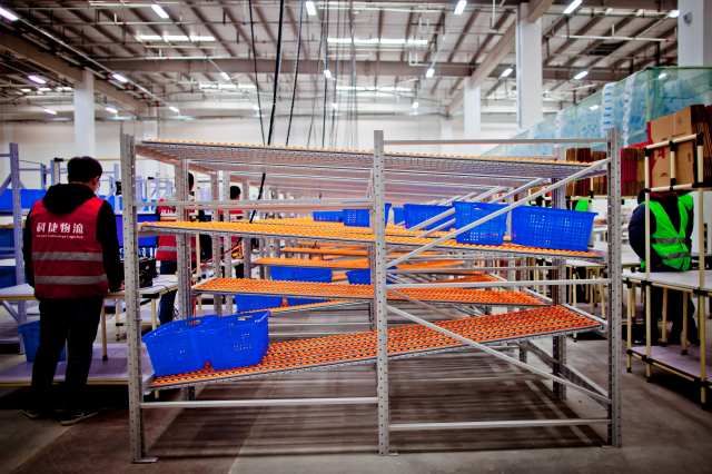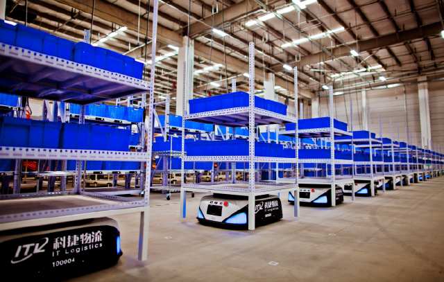 科捷武清旗艦倉內(nèi)“人機共舞”的機器人