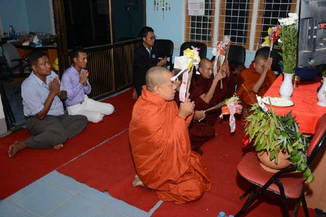 此次開倉儀式入鄉隨俗,采用緬式慶典形式--宋干(音同)舉行。緬甸是個全民信佛的國家,佛教氛圍濃厚,處處可見佛塔,人民樸實友善。此次開倉更是請來了當地著名僧學院馬哈伽納揚的高僧祈福做法。馬哈伽納揚是緬甸最大的僧學院,在這里進修的僧侶數量過千,也被稱作“千人僧院”。