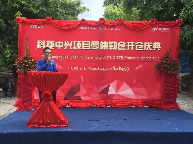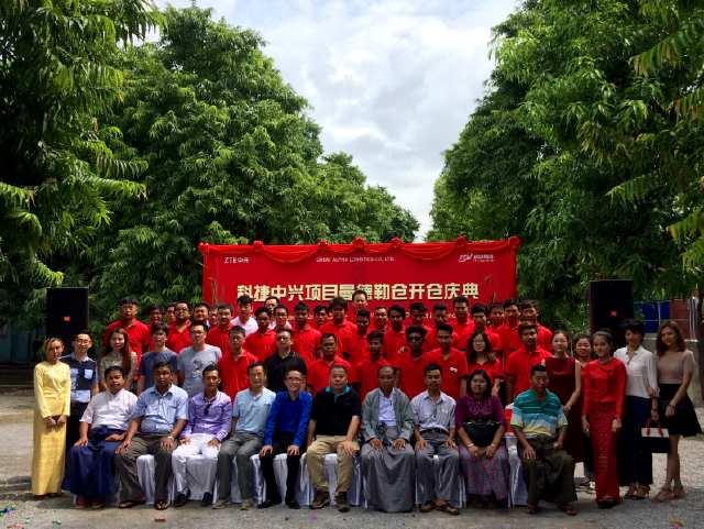 科捷物流常務副總裁陳滔滔先生,中興交付部亞太物流倉儲總監黃忠湘先生,中興全球物流部海外關務總監喻捷先生,科捷物流在緬合作伙伴Great Alpha總裁 Aung Kyaw Myint,緬甸相關政府官員共同參加了此次開倉盛典。