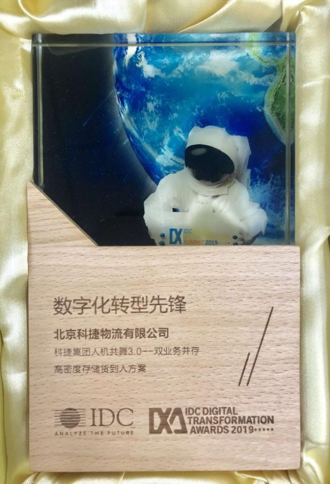 神州控股旗下科捷以“科捷集團人機共舞3.0--雙業務并存高密度存儲貨到人方案”榮獲IDC頒發的“數字化轉型先鋒”榮譽稱號。